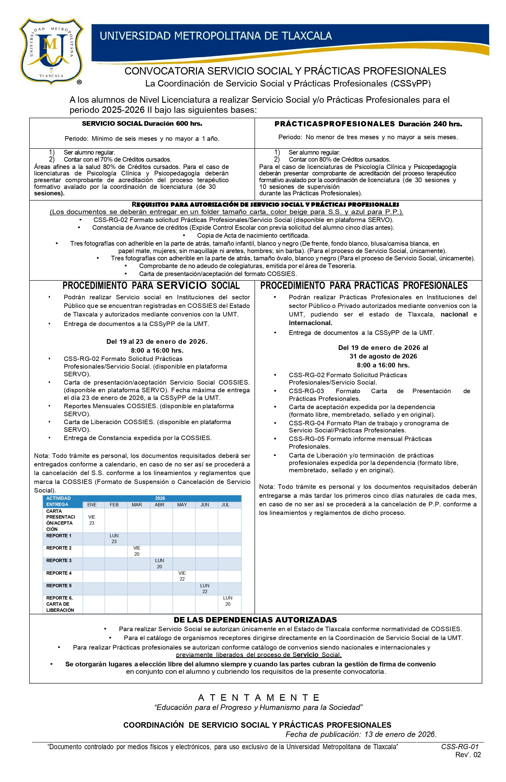 CONVOCATORIA SERVICIO SOCIAL Y PRÁCTICAS PROFESIONALES